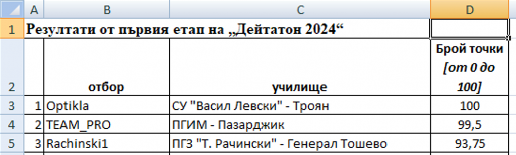 Отбор TEAM_PRO от ПГИМ е с 99,5 точки от максимален 100 в националното състезание DATATHON 2024