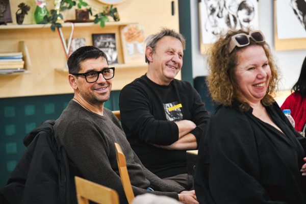 „С вълнение споделяме, че днес дадохме старт на първата репетиция на новата постановка „Муха в главата“ от Теди Москов! Директорът на театъра Димитър Баненкин откри репетиционния процес и пожела на екипа творческо вдъхновение и успешна работа! Режисьор на спектакъла е Теди Москов, а на сцената ще видите: